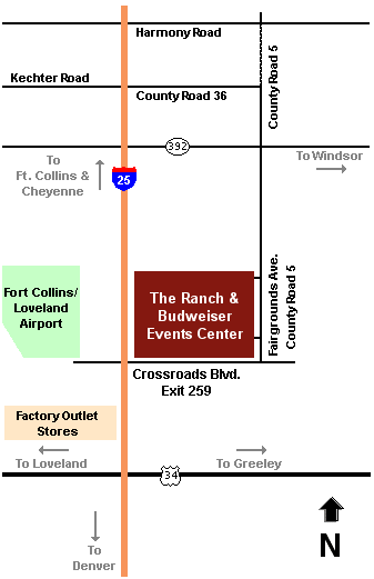 34, near Loveland, Colorado. To reach The Ranch, exit I-25 at Crossroads Blvd.,